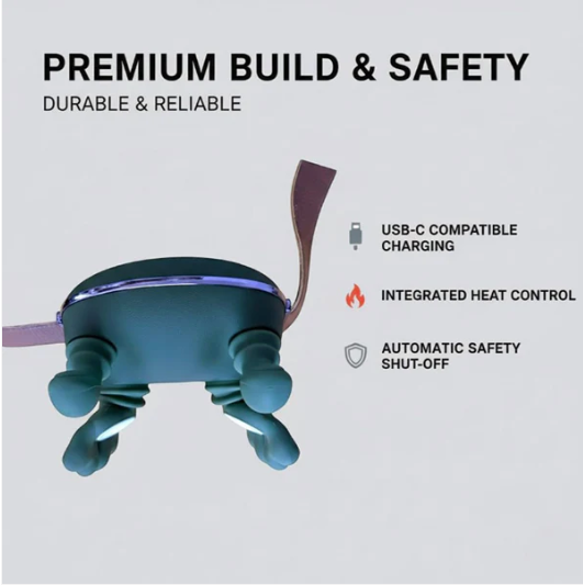 This advanced neck and shoulder massager is designed to deliver deep comfort through kneading, pressure-point stimulation and soothing heat therapy. Its flexible finger-shaped nodes replicate the sensation of a real massage, easing stiffness and relaxing tense muscles. The adjustable strap system allows you to secure it comfortably around the neck, shoulder, back, waist or legs for a perfectly targeted massage experience. With its ergonomic shape, simple control panel and lightweight construction, it is ideal for everyday relaxation at home, in the office or while traveling. The built-in heating mode enhances muscle relief, helping improve circulation and easing fatigue after long hours of work or travel. A reliable and portable relaxation device, it provides a rejuvenating experience whenever you need it.